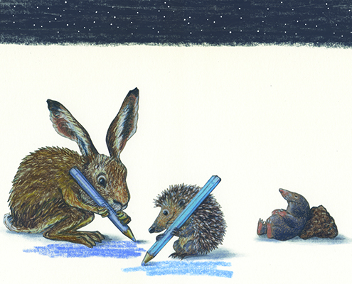 Der Hase und der Igel sahen erstaunt in den Himmel. Es war Nacht geworden. Ein glitzerndfeuchtes Schwarz, das duftende Geborgenheit versprach.